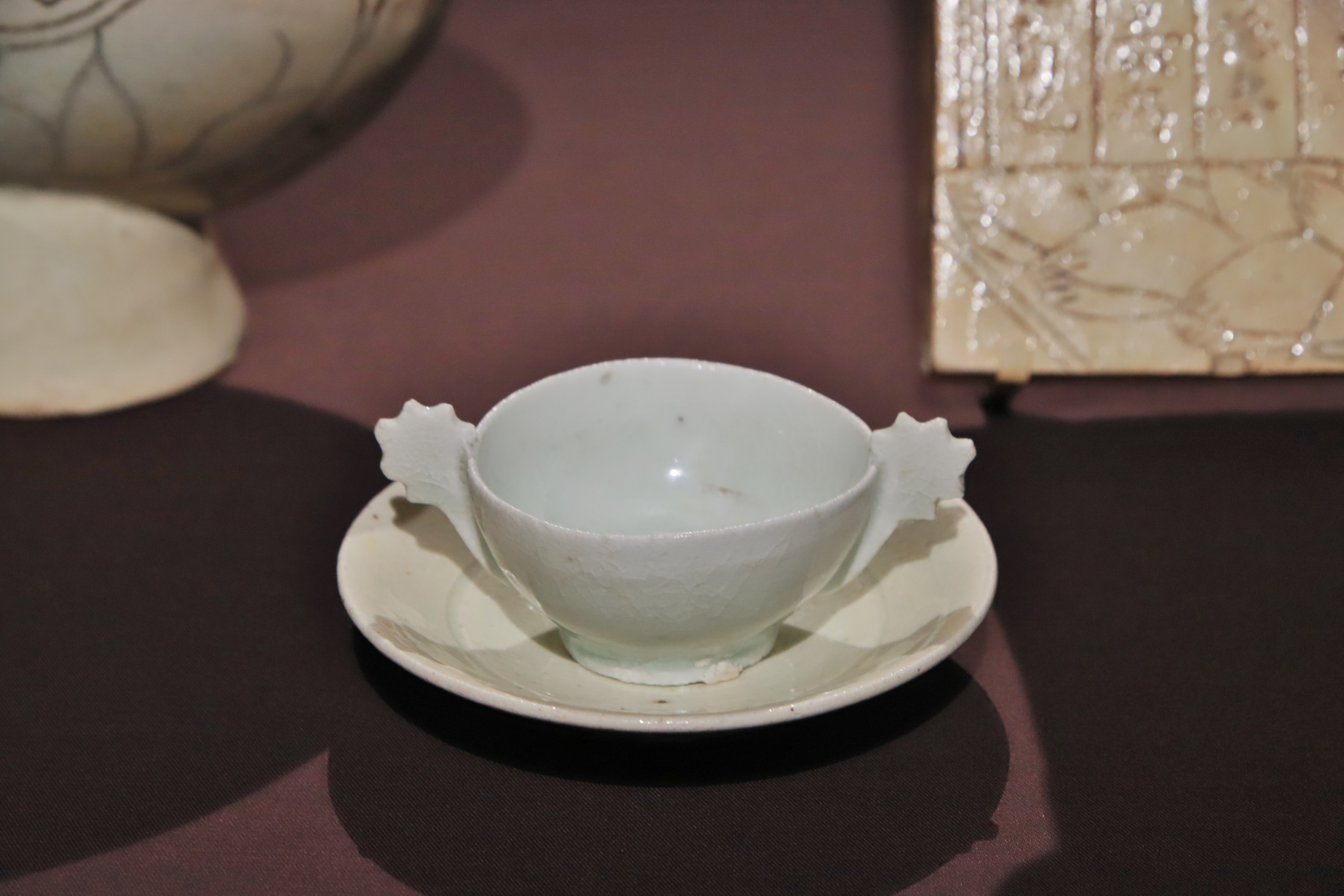 또 다른 순백자 잔접시는 조선 초기 백자로서 톱니바퀴 모양의 손잡이는 매우 드문 예이다.기구: 매장 당시 죽은 사람과 함께 묻힐 그릇으로 만들어진 것으로 추정).