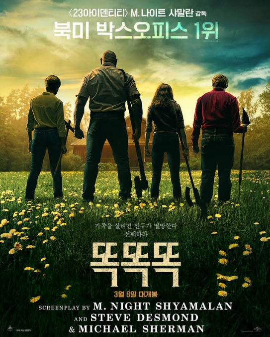 안녕하세요~ 영화보는 망고입니다. 북미 박스오피스 1위 영화 똑 똑나는 그것을 알아낼 것입니다. Paul G. Tremblay의 소설(세상 끝에 오두막) 영화를 기반으로 똑 똑 캐스트 및 정보 검토가 시작됩니다.