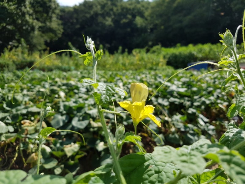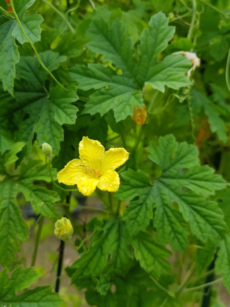 #여주 먹는 방법은요. 여주국물이나 여주환을 사먹거나 말려서 차로 마시거나 생여주를 속을 파내서 썰어서 기름에 볶아 반찬으로 드셔도 됩니다. #노란꽃에 #노란나비가 힘내고 있습니다.