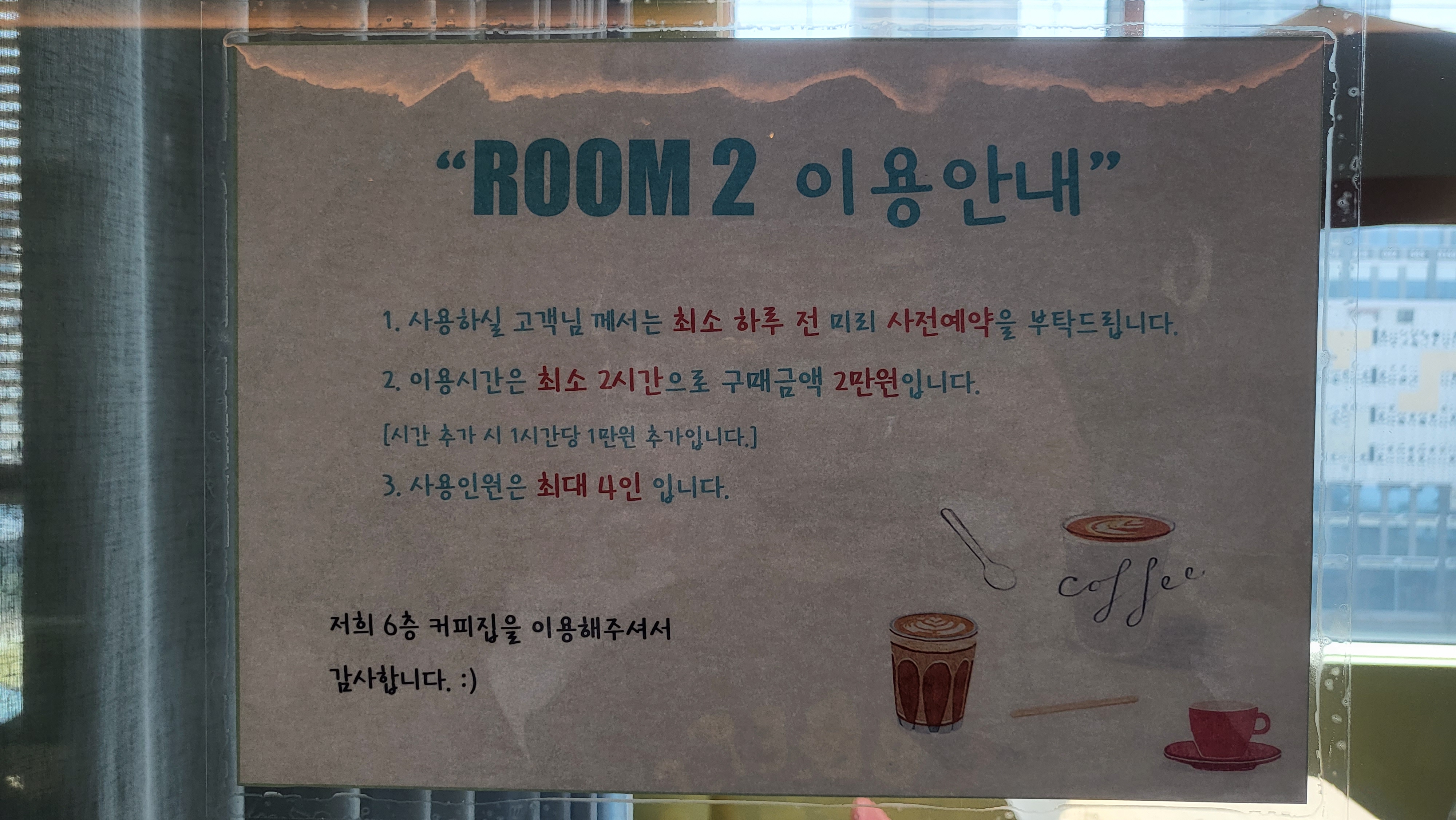 6층에 위치한 6층 커피하우스입니다.