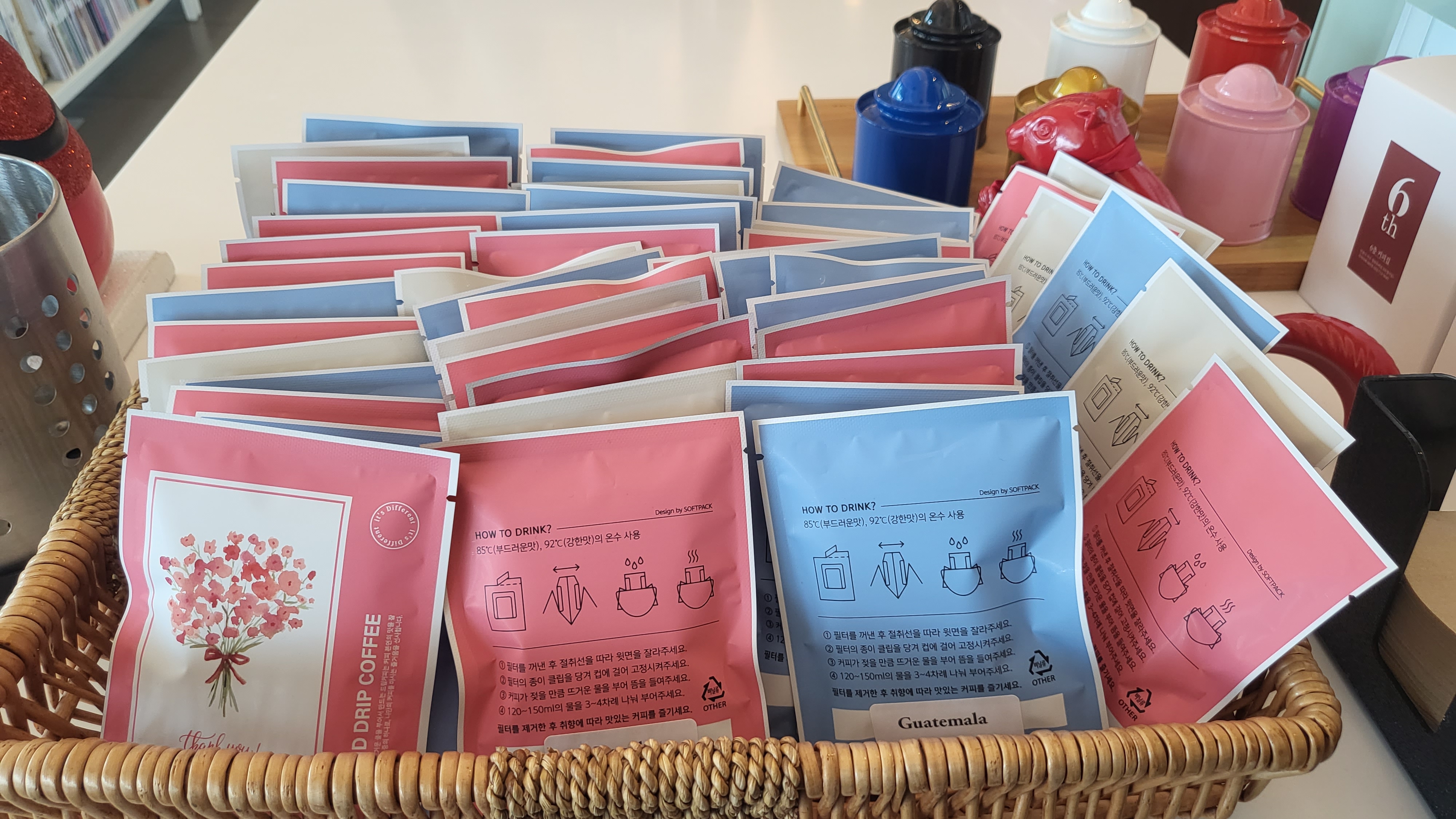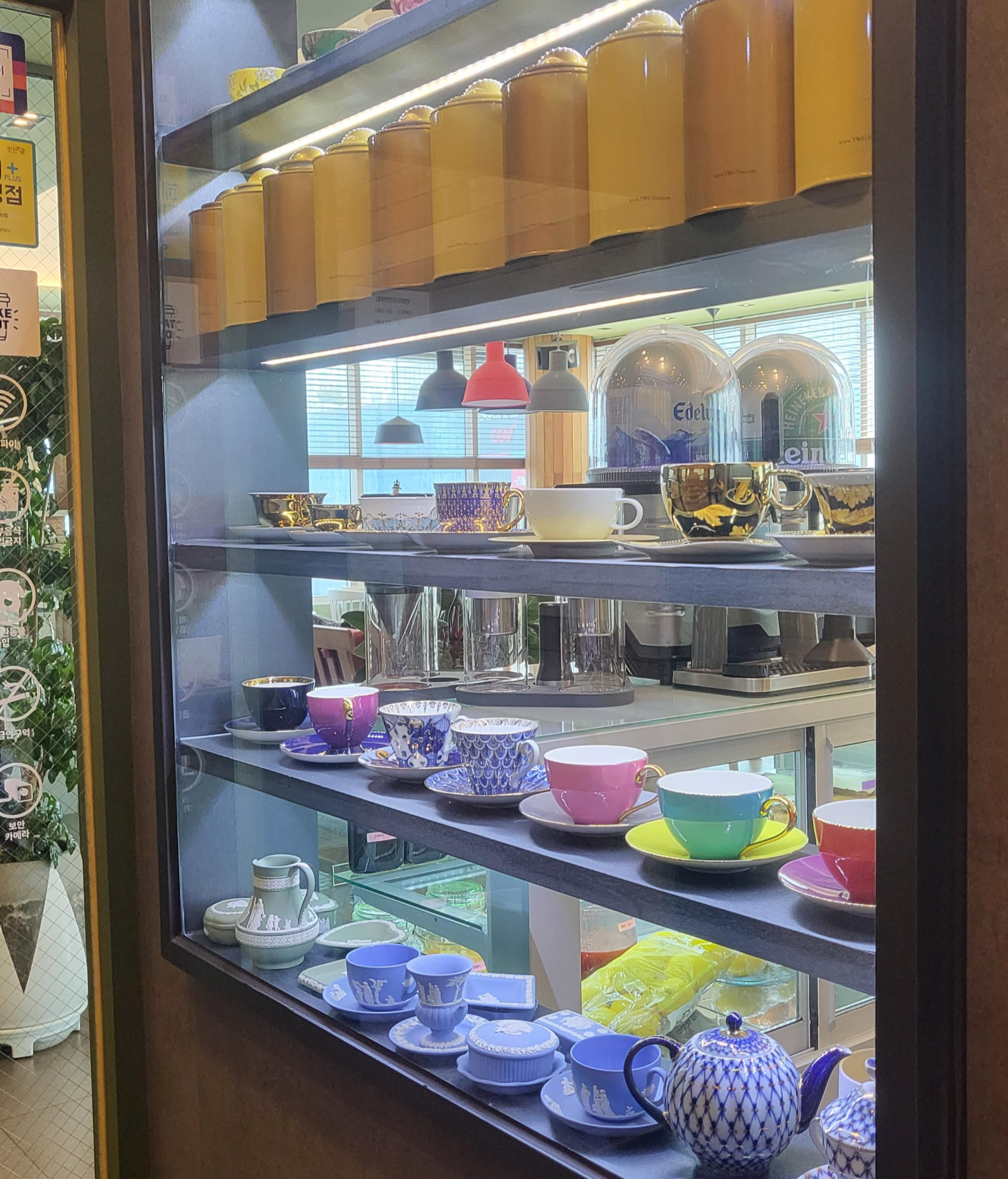 세계 각국의 커피잔들이 저마다의 매력을 가지고 줄지어 있는 모습이 너무 귀여웠습니다.