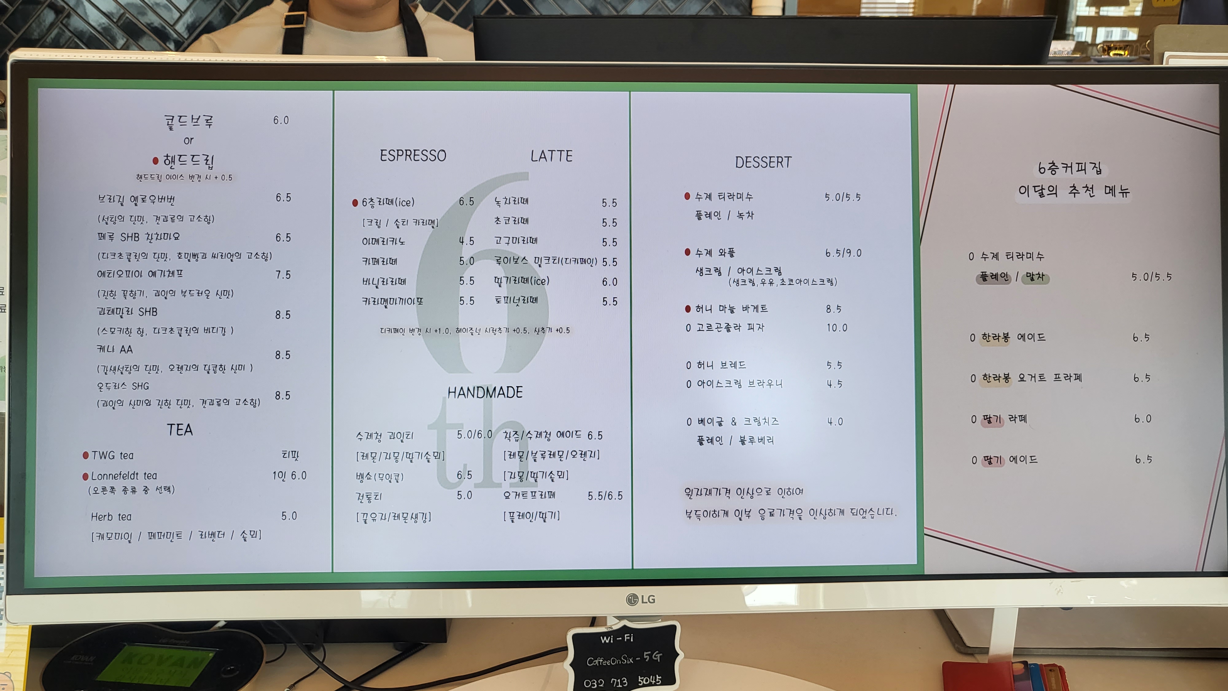 6층에 커피하우스의 시그니처 드링크인 6층 라떼가 있어요.