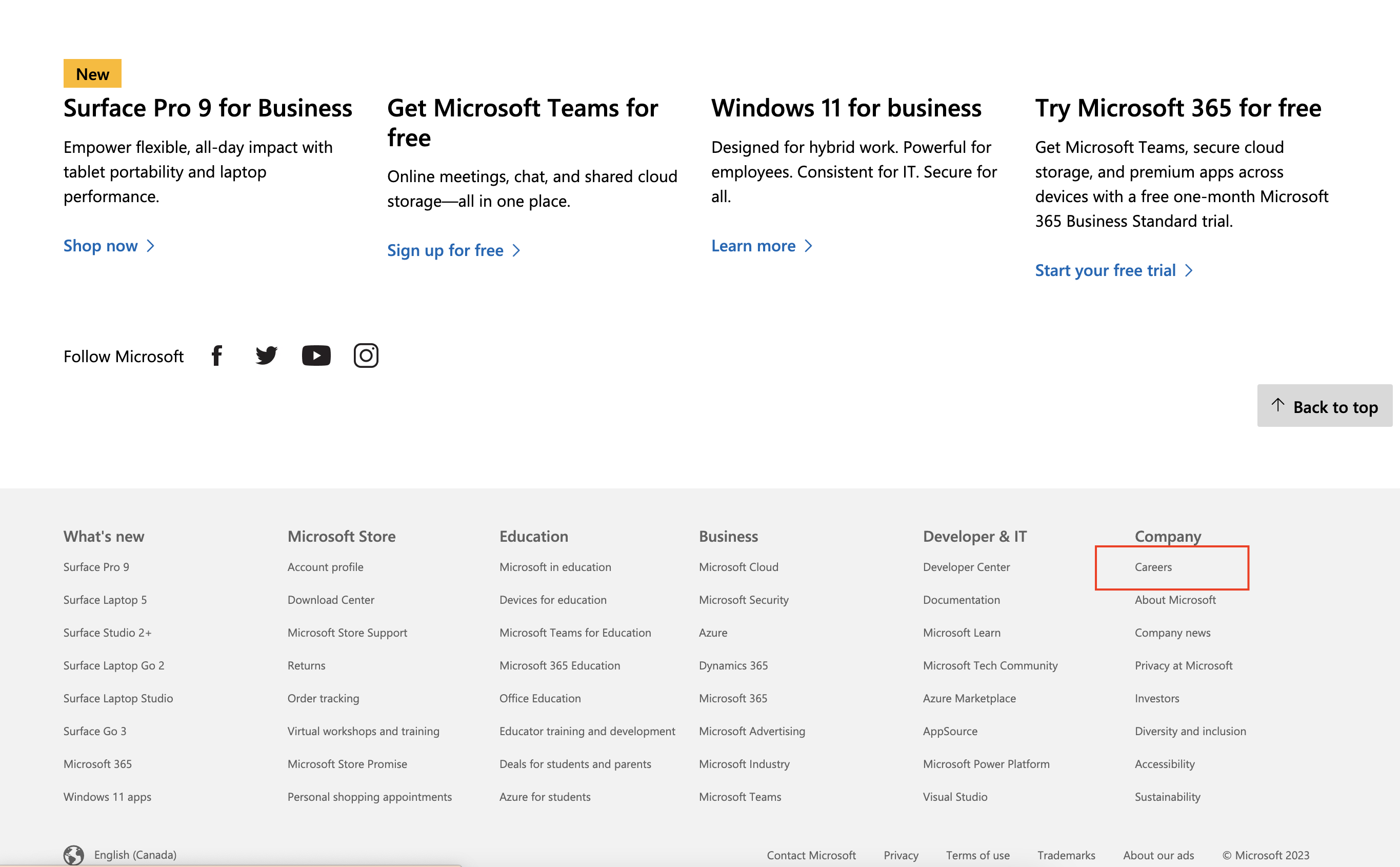 https://www.microsoft.com/en-ca/ 공식 웹 사이트로 이동하여 채용 섹션을 탐색하여 열린 직책을 찾을 수 있습니다.