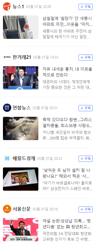 오늘의 속보 헤드라인.
